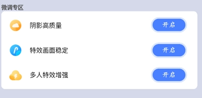 3、微调专区:支持自定义开启调节阴阳高质量、特效画面稳定、多人特效增强等功能,用户可依据自身手机配置与网络状况进行个性化微调。