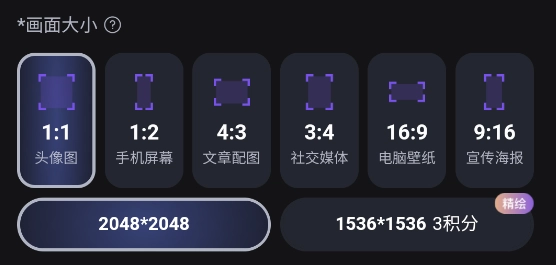 3、接下来要选择画面大小,这里提供多种比例选项,能够适配不同的平台与设备。