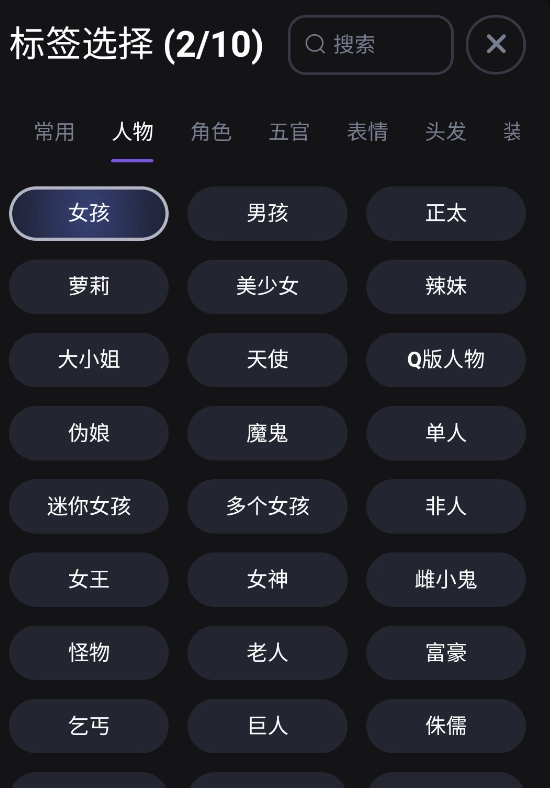 点击“更多”按钮后,会展示其他可供选择的标签,最多可选择十个标签,同时支持对标签进行搜索。