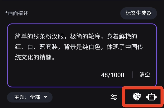 要是你暂时没有头绪,不妨点击输入框右下角的随机生成按钮,或者让AI帮你完成内容填写。