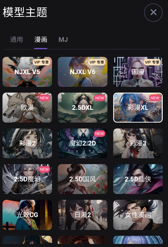 无界AI的AI绘画模型十分全面:它持续学习市场上的各类模型,同时自主训练了大量具有特色的AI模型。无论是二次元风格、MJ模型风格,还是历史著名画家的风格、现代数字艺术风格,乃至各种小众画风,都能在无界AI平台上找到对应的模型来实现创作需求。