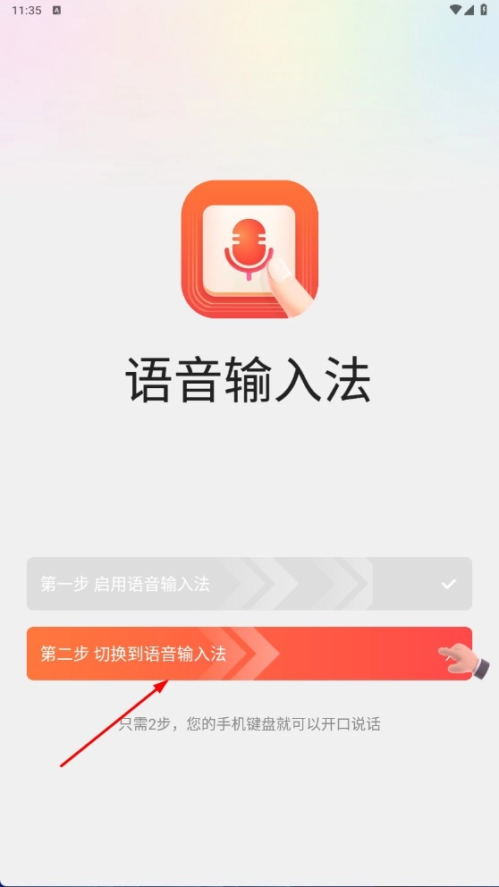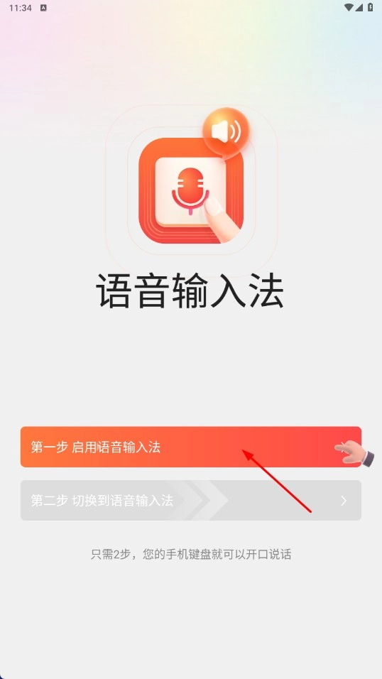 3、启用后点击【第二步切换到语音输入法-功能按钮】,即可进入切换流程。