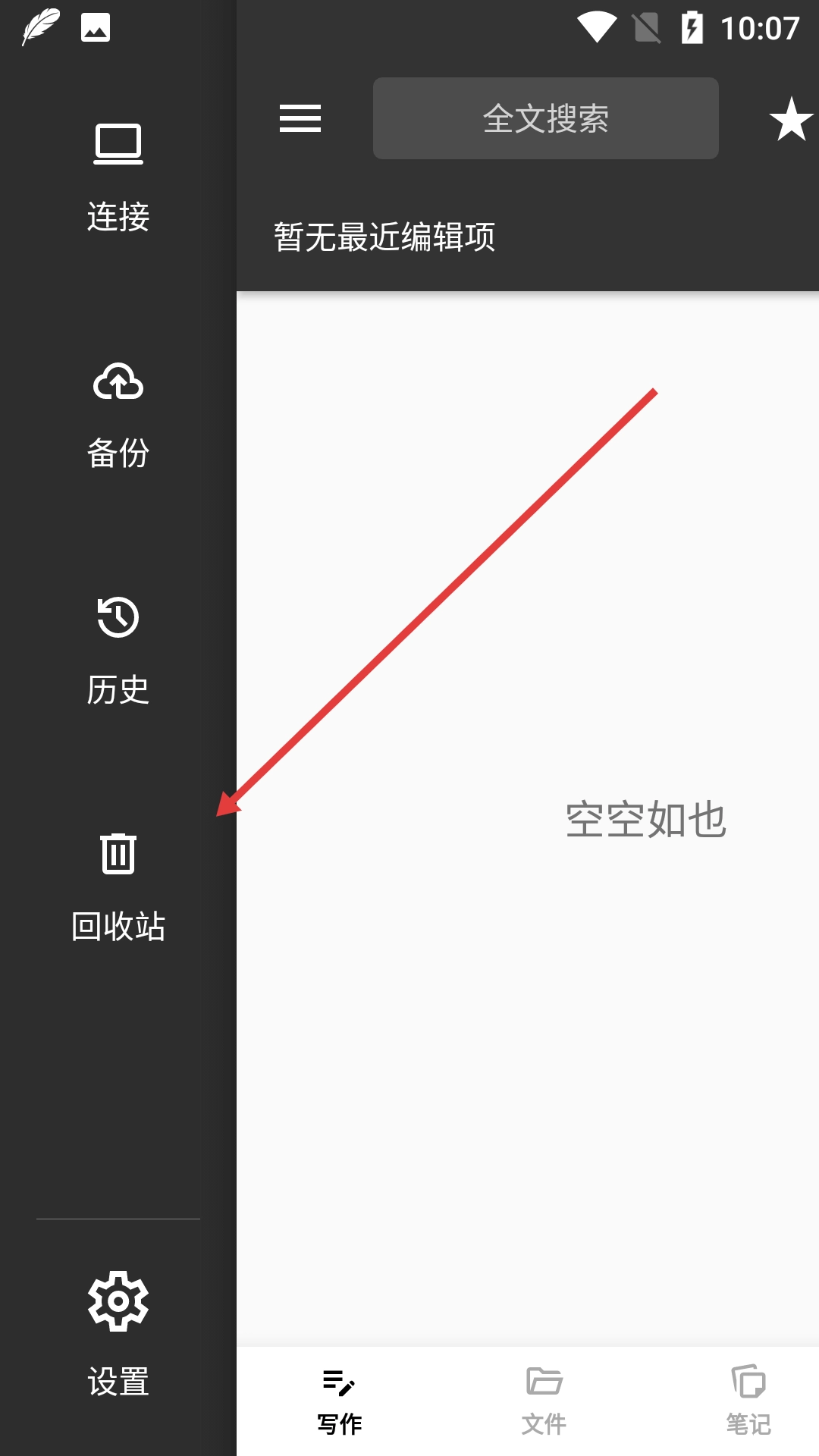 2、在侧边操作栏里找到【回收站】选项并点击,即可进入回收站界面。