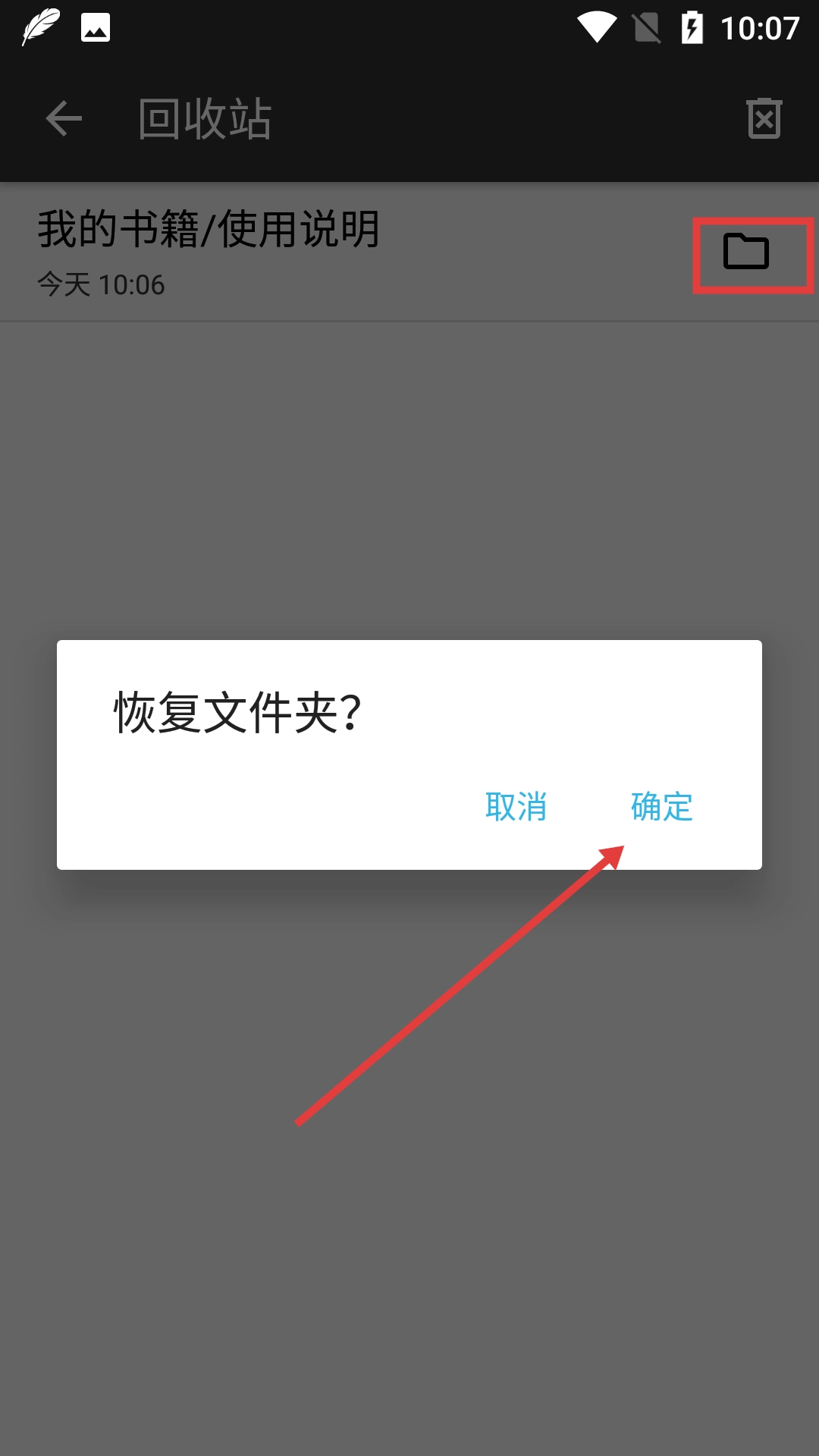 3、在回收站里找到目标文件夹,点击该文件夹后,会弹出“恢复文件夹?”的确认框,在这个确认框中选择【确定】选项即可。