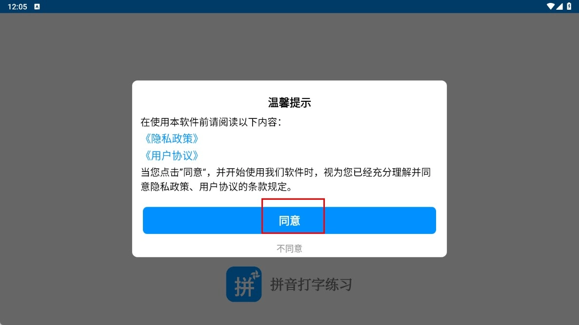 1、点击【同意】功能按钮,以确认同意该软件的《隐私政策》与《用户协议》。