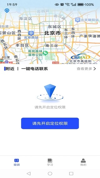 1、进入培训页面后,系统会结合定位功能,为用户推荐周边的培训点。