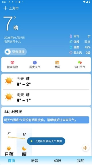1、可以清晰听到天气预报的语音播报,对老人和驾车人群来说使用起来很方便,无需费力查看屏幕,就能轻松了解天气状况。