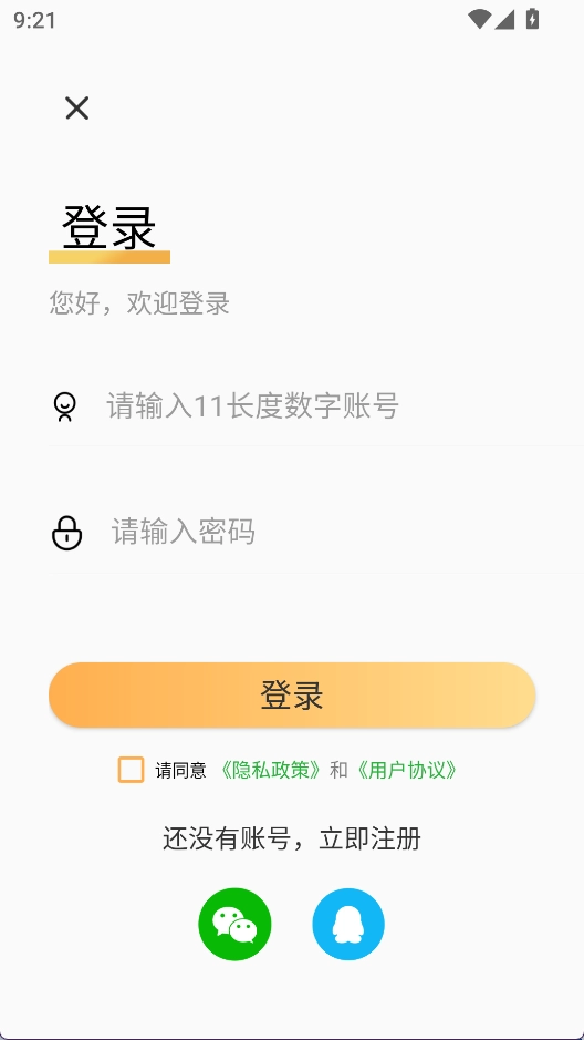 3、在“我的”页面完成登录操作,可通过账号密码、QQ、微信这三种方式进行登录。