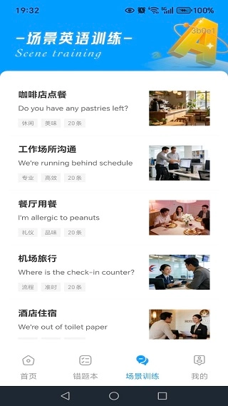 4、场景训练页面为我们呈现了丰富多样的口语训练内容,助力我们轻松提高英语成绩。