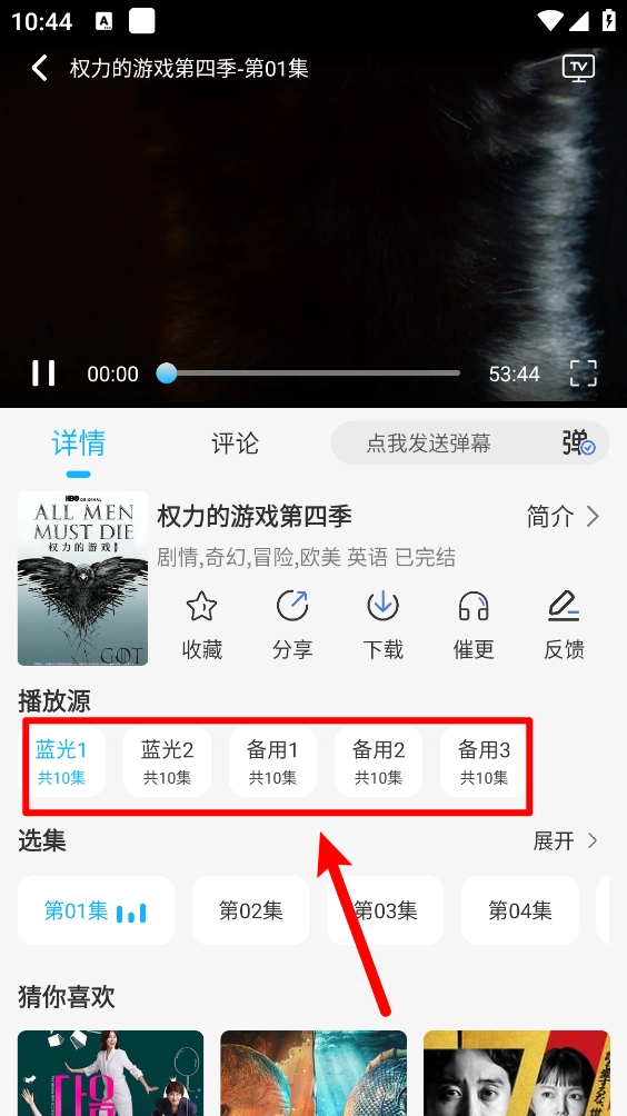2、在播放详情页涵盖多个播放源,如图,点击切换即可。