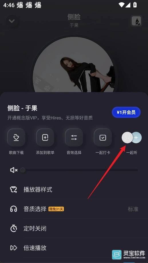 3、在弹出的菜单中选择【一起听】,系统会生成一个共享房间或链接。