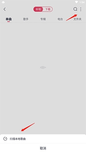 2、点击右上角的“更多”选项,接着选择“扫描本地歌曲”选项就可以了。