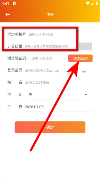 4、输入验证码、设置密码等信息后,点击确定,完成注册。