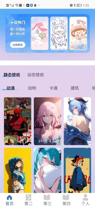1、在首页中提供静态壁纸和动态壁纸,可以随时自由选择;