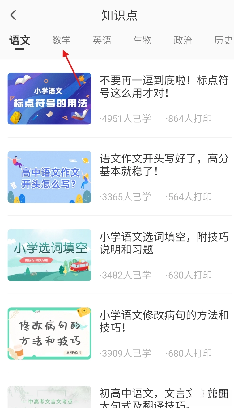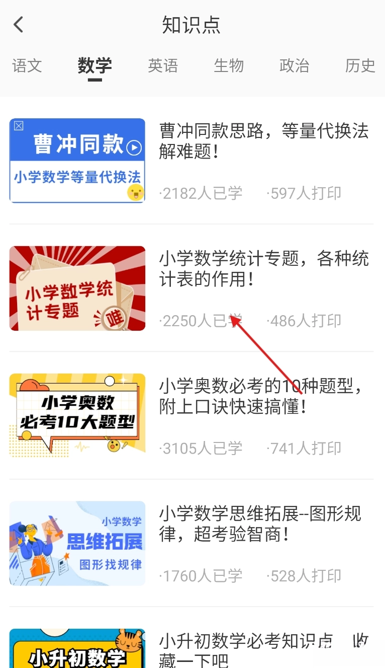 1、点击知识点。
