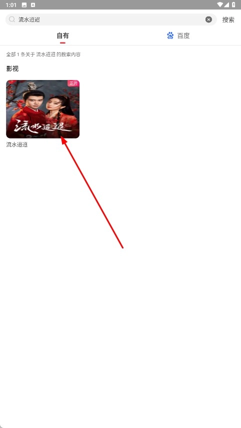 2、在搜索结果中,点击【流水迢迢-影视封面】,即可进入该影视的详情页面。