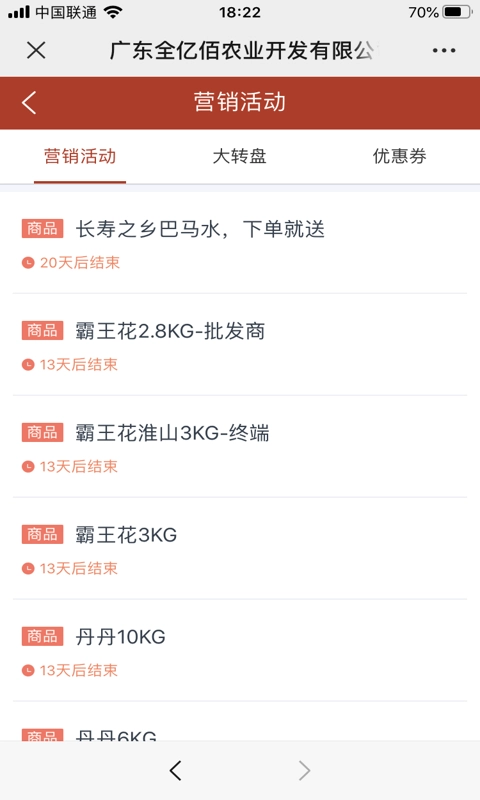 1.每个营销活动的信息都相当具体,且活动内容丰富多样,涵盖大转盘、优惠券等形式。