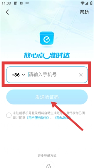 2、进入登录页面后,先输入手机号,再点击【发送验证码】按钮,即可启动短信验证码的获取流程。