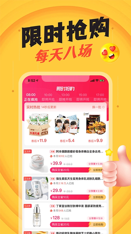 9.9元包邮专区、限时抢购等特色板块,众多实惠好物正等待您来选购