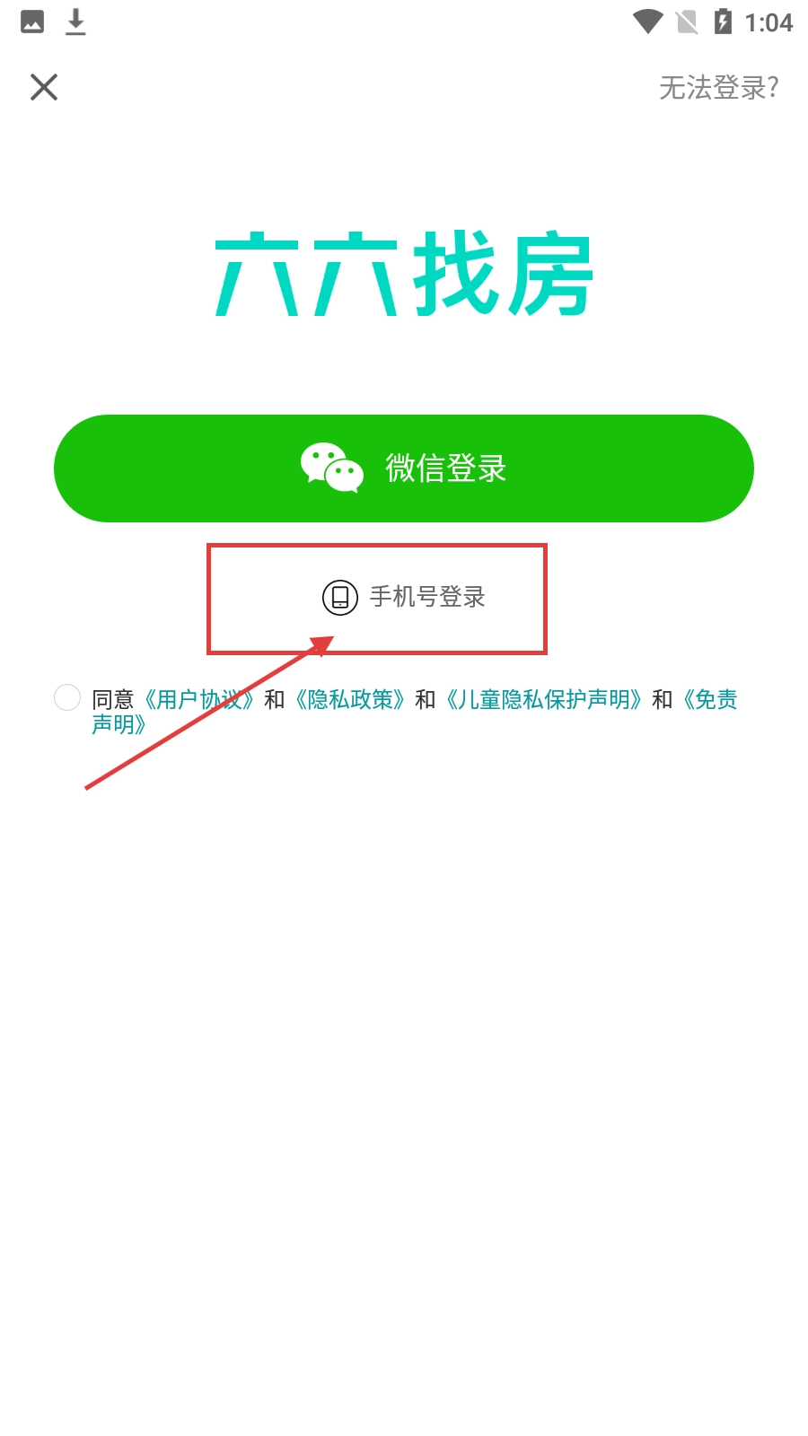 3、在登录选择界面,点击【手机号登录】选项,即可进入手机号登录页面。