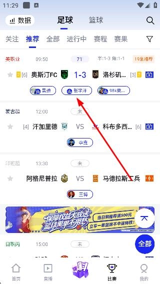 2、在赛事数据页面选定目标赛事,例如奥斯丁FC与洛杉矶FC的对阵赛事,随后进入该赛事的详情页面。
