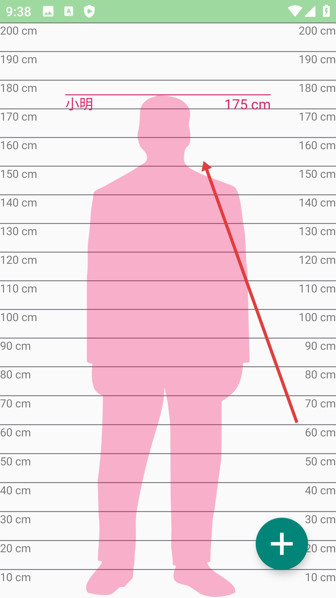 4、添加操作完成后,在高度刻度界面中,就能够查看已添加的人员及其对应的身高信息。