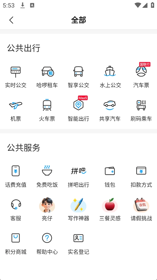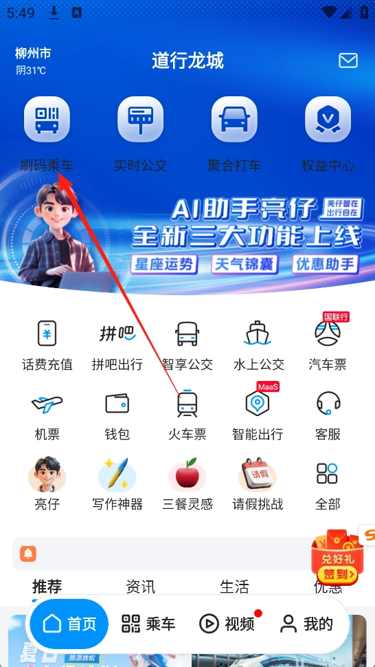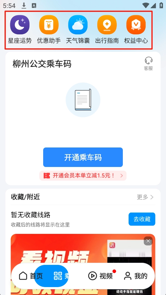 1、打开软件并完成登录后,用户即可通过【乘车】功能开启乘车流程