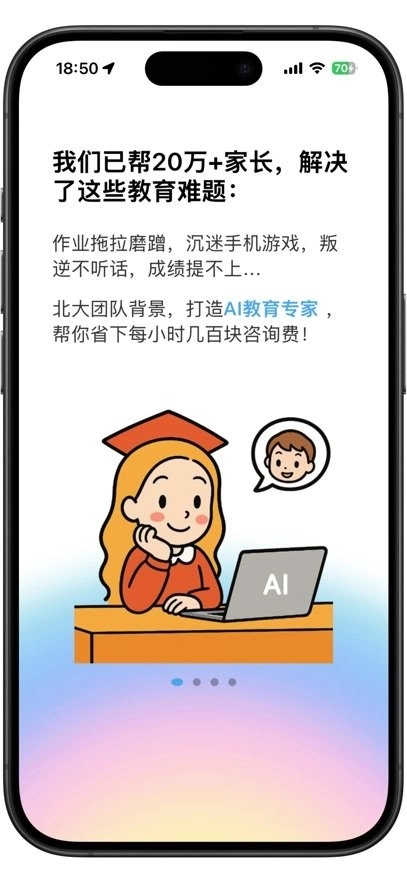 - 全天候AI教育顾问:孩子闹脾气、不听话、抵触写作业?AI顾问实时在线,给出专业解决办法。费用仅为线下咨询的百分之一,成效已获20万家庭认可。