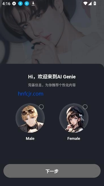 2、按照提示挑选你的初始身份(例如“探索者”“倾诉者”或者“创作者”),系统会依据你的偏好,智能地推荐适配的角色和内容。