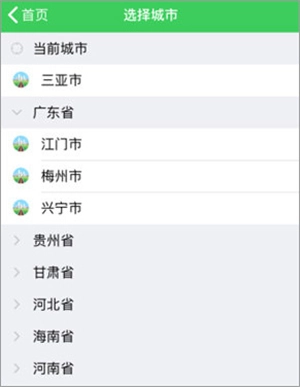 2、然后在“选择城市”界面直接点击想要切换的城市就能完成转换了。