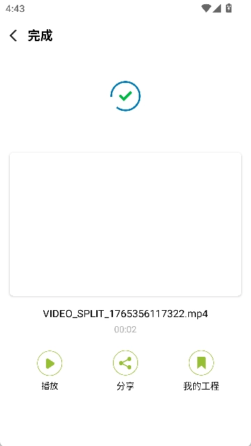6.稍等片刻就能完成视频分割,之后可以点击播放或者把它分享出去。
