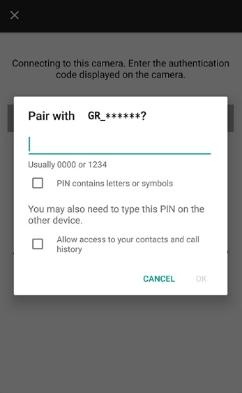 ① 认证码会出现在相机的液晶显示屏上,请在应用程序里输入该验证码。