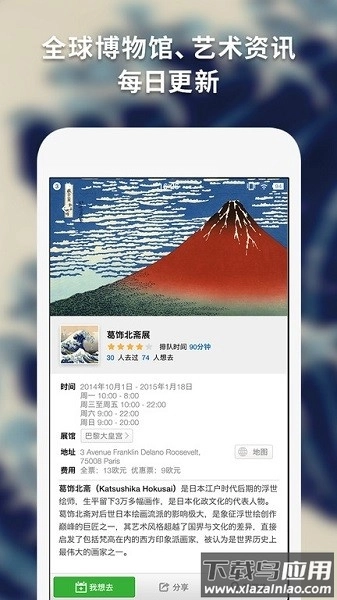 这是一款聚焦全球艺术展览与博物馆活动的移动应用,能帮助用户及时了解所在地及世界各地的精彩展览资讯,不仅支持规划个人观展行程,还能便捷地记录和分享观展时的影像与感悟。