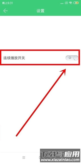 3. 进入设置页面后,找到“连续播放开关”选项,点击其右侧的按钮将其关闭。