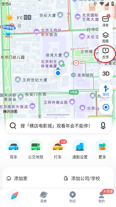 首先打开腾讯地图应用,在界面右上角找到“反馈”功能的入口。