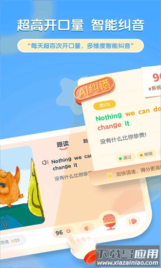 运用语音识别技术来评估跟读表现,发音部位有误的地方会被重点标记。