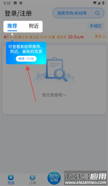 2、登录后按照引导完成船舶信息认证,系统会自动开启货源推荐功能。