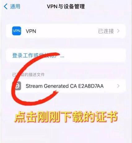 8、找到VPN与设备管理设置,点击stream描述文件