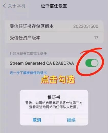14、返回stream,若提示显示设置成功,则表明证书已安装完成。