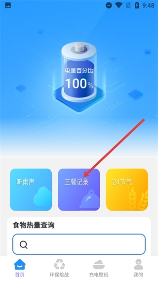 1、打开应用首页后,点击【三餐记录】功能按钮,即可进入三餐记录的日期选择界面。