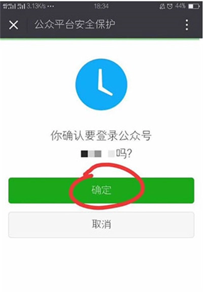 4、扫描成功后,页面会弹出一个公众平台安全保护提示,接着我们点击确定按钮完成登录。
