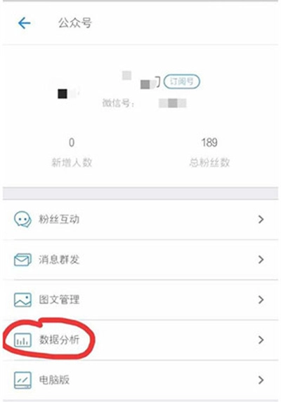 6、进入公众号设置页面,找到数据分析选项并点击,接着执行后续操作步骤。