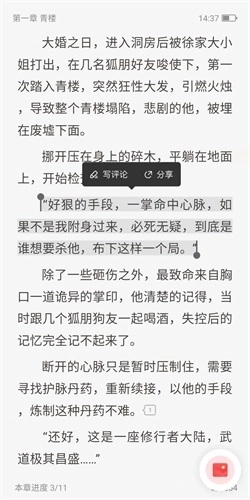 2、长按想要评论的内容将其选中,接着点击“写评论”选项就能完成操作了。