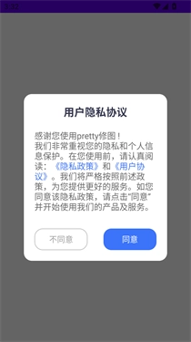 1、在本站打开Pretty修图,点击同意相关协议