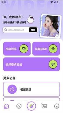 2、进入首页,视频涂鸦、视频转gif、视频变速等功能便会直接呈现。