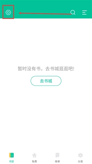 1、打开书架界面后,点击左上角的设置图标,即可进入个人中心页面。