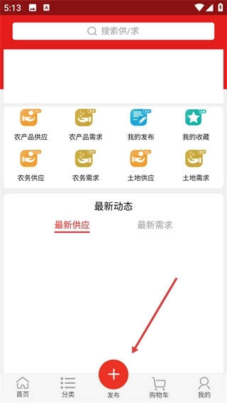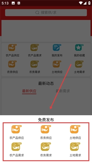 2、选择【农产品供应】【农产品需求】等分类提交信息。