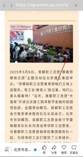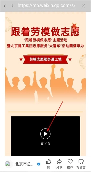 3、进入该资讯详情页面后,可看到活动主题与相关视频,点击视频的播放按钮,即可观看活动的相关内容。