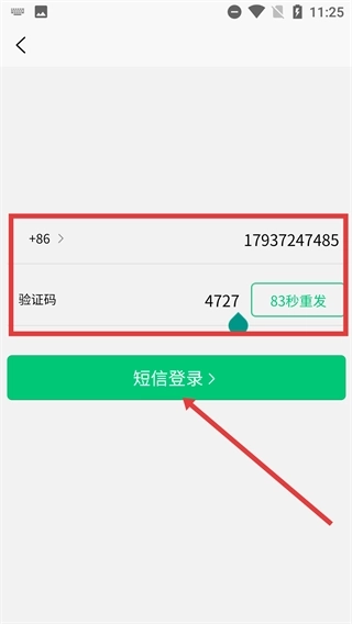 2、进入登录界面后,先确认手机号已填写完整,接着输入收到的验证码,随后点击【短信登录】按钮,即可完成账号登录的全部流程。