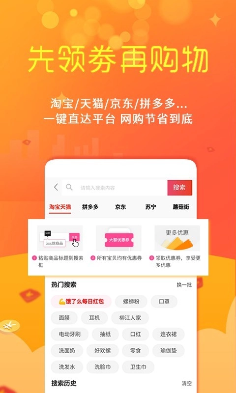 多种优惠券,复制宝贝标题至应用后自动识别,一键搜索即可领取